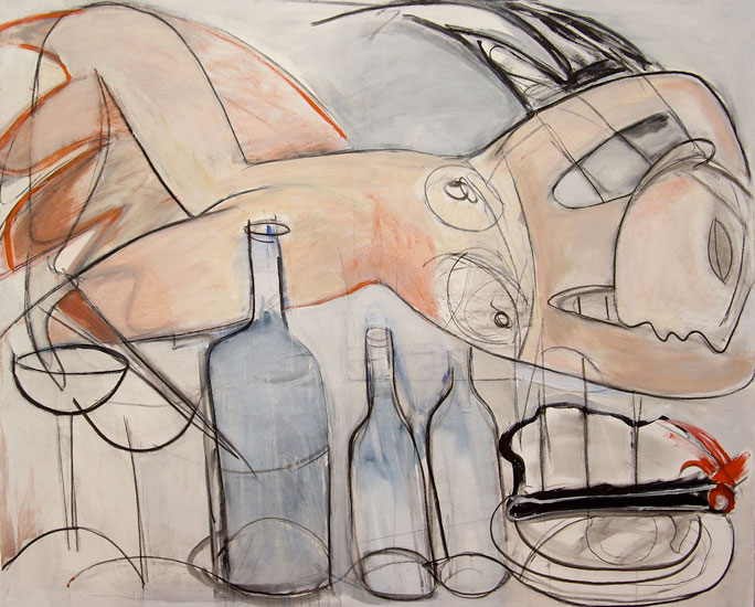 Mujer, botellas