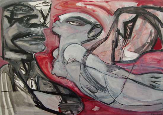 El acoso de la mujer óleo sobre tela 200 x 150 cm. Colección del artista Mención Especial en la Bienal Nacional de Pintura de Rafaela, 2009. zoom detalle