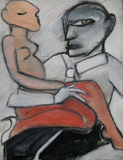 4. El encuentro Óleo sobre tela 20 x 26 cm. Colección de la artista Parte del libro de artista presentado en la New York Art Book Fair 2018 (Musem of Modern Arts, NY) zoom detalle